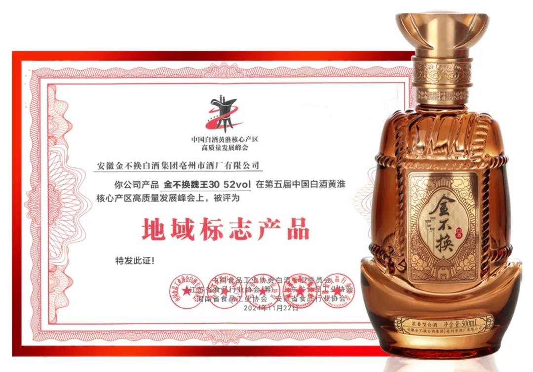 峰會由中國食品工業(yè)協(xié)會及蘇、魯、豫、皖四省食品工(行)業(yè)協(xié)會主辦,21位國家級白酒評委對黃淮產區(qū)主流酒企產品鑒評,金不換·魏王30與古井、迎駕、洋河等榮獲黃淮核心產區(qū)“地域標志產品”。這是繼金不換·厚道、金不換·復興20后,金不換酒又一次蟬聯(lián)黃淮核心產區(qū)“地域標志產品”。